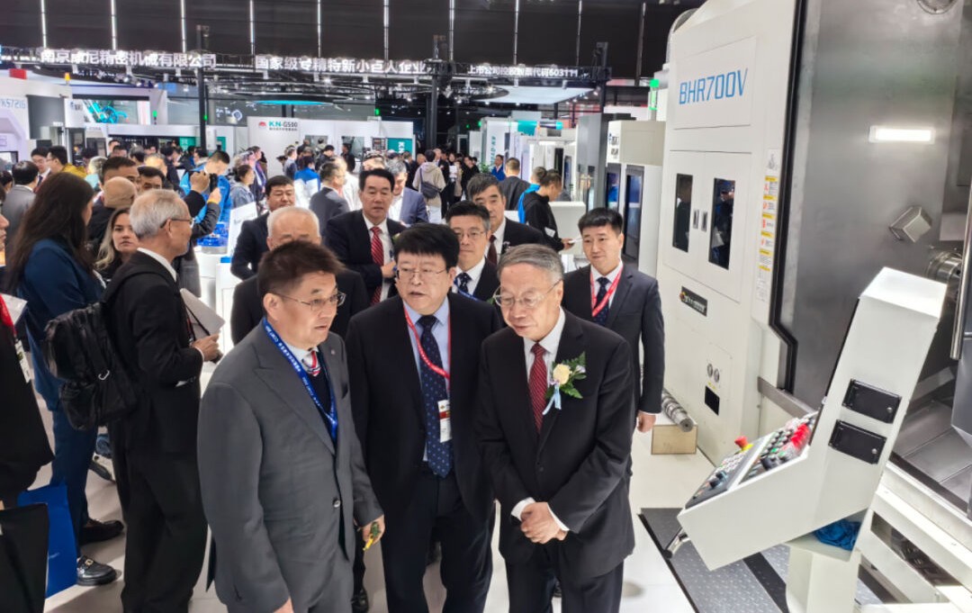 十三屆全國政協(xié)經(jīng)濟委員會副主任、工業(yè)和信息化部原副部長蘇波,教育部原部長、中國工程院院士周濟,中國機床工具工業(yè)協(xié)會常務(wù)副理事長兼秘書長毛予鋒,陜西國資發(fā)展研究院高端裝備制造產(chǎn)業(yè)專家委員會主任嚴鑒鉑等領(lǐng)導(dǎo)蒞臨集團展位。秦川集團黨委書記、董事長馬旭耀、寶雞機床董事長李清耀向各位領(lǐng)導(dǎo)介紹企業(yè)及產(chǎn)品情況。